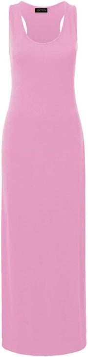 Womens Summer Maxi Casual Dress Ladies Racer Back Long Beach Dress with Short-Sleeve Crew-Neck Loose Sizes 8-26