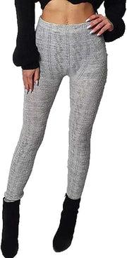 Womens Knitted Tartan Leggings Ladies Soft Warm Wool Christmas Retro Legging