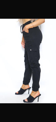 LUXE DIVA LADIES DRAWSTRING COMBAT SIDE POCKET PLAIN CUFF BOTTOM LEGGING / TRS