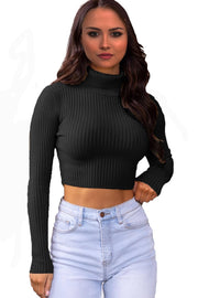 LUXE DIVA Womens Long Sleeves knitted Ribbed Polo Neck Crop Top