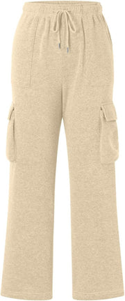Ladies Cargo Combat Wide Leg Pants Elastic Waist 6 Pockets Work Casual Trousers