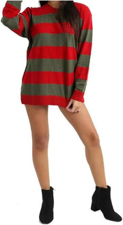 LUXE DIVA Women’s Red Green Stripe Knitted Jumper Ladies Halloween Fancy Dress Sweater Top Girls Long Sleeve Knitted Pullover Winter Sweatshirt