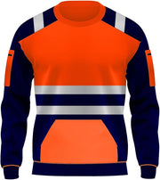 LUXE DIVA Hi Vis Crew Neck Sweatshirt with Kangaroo Pocket Orange Yellow S 3XL High Visibility Safety Workwear Reflective Tape Security Outdoor Jumper