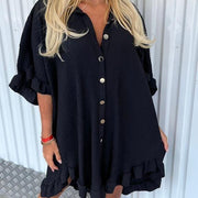 LUXEDIVA Women's Shirt Dress Pleated Short Sleeve Loose Italian Buttons Plain Detail