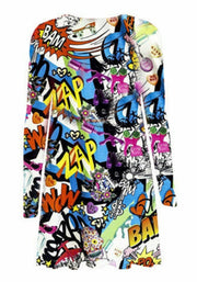Women Long Sleeve Printed Casual Swing Ladies Dress Flared Skater Smock A Line Plus Size Tops UK
