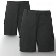 LUXE DIVA Boys School Uniform Cargo Shorts, Teflon-Coated Plain Elasticated Waist Boys Shorts with Zip and Clip Fastening, Black & Grey Uniform Summer Short Pants, Ages 3-13 Years