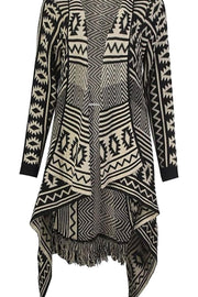 LUXE DIVA Ladies Womens Long Sleeve Knitted Aztec Pattern Open Waterfall Tassel Cardigan Aztec Diamond