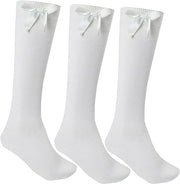 3 Pairs Girls Knee High School Socks Cotton Socks with Fluffy Ribbons Bow, Back to School Socks Uniform Party Wear Comfort Fit Long Socks Stocking Girls Bow Knee High Kids School Sock