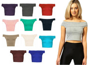 Women's Off Shoulder Crop Top Bardot Sleeveless Cropped Vest Short T-Shirt Plain