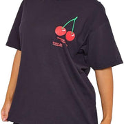 LUXE DIVA Women's Cherry Perfection Printed Oversized Top T-Shirt, Ladies Casual Short Sleeve Baggy Fit Crew Neck Summer Oversized Fruit Slogan Print Tees Shirt UK Plus Size Womenswear Lady Comfort Tshirt Streetwear Crewneck Round Neck