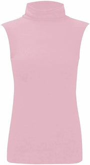 Women Turtle Neck Sleeveless Tops Bodycon Casual Shirt Jumper Top Plain Polo Neck, S-ML