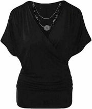 Womens Rap Over Necklace Batwing Top Ladies Stretchy Wrap Over Loose Fit Vest