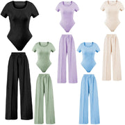 Ladies scoop neck short sleeve bodysuit & elasticated wide leg trouser two piece