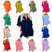 LUXE DIVA Women's Ladies Gold Button Pleated Frill Summer Shirt Swing Smock Mini Dress Top